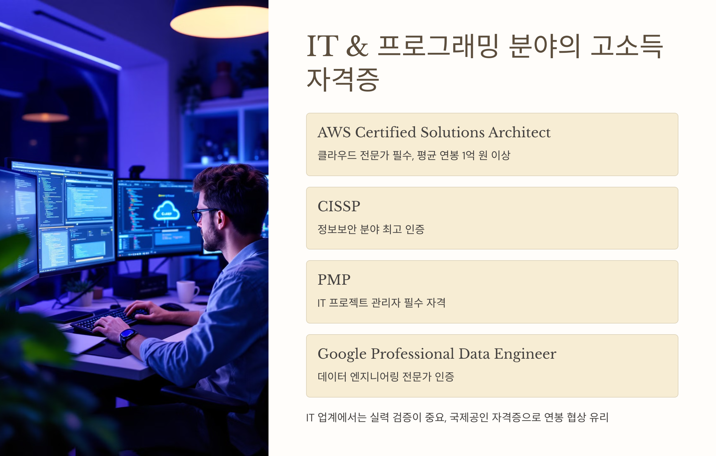 - IT & 프로그래밍 분야의 고소득 자격증